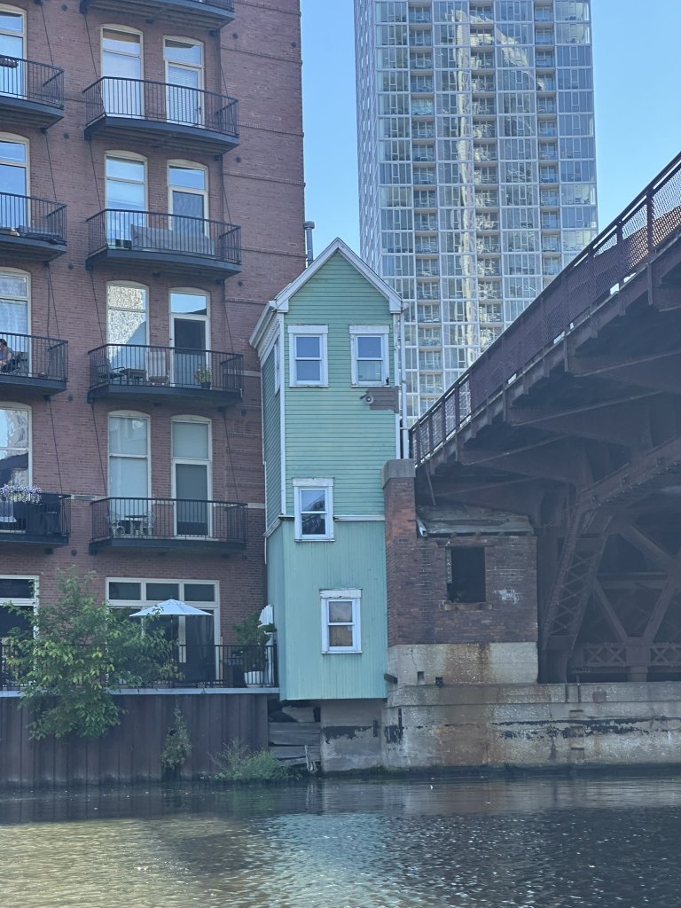 From a kayak you also get a wonderful view of the funny little bridge tenders’ houses tucked in at the edges of bridges. Back when these drawbridges went up and down all the time, somebody had to be there to operate them. And I’ve never seen a city with as many bridges as Chicago.